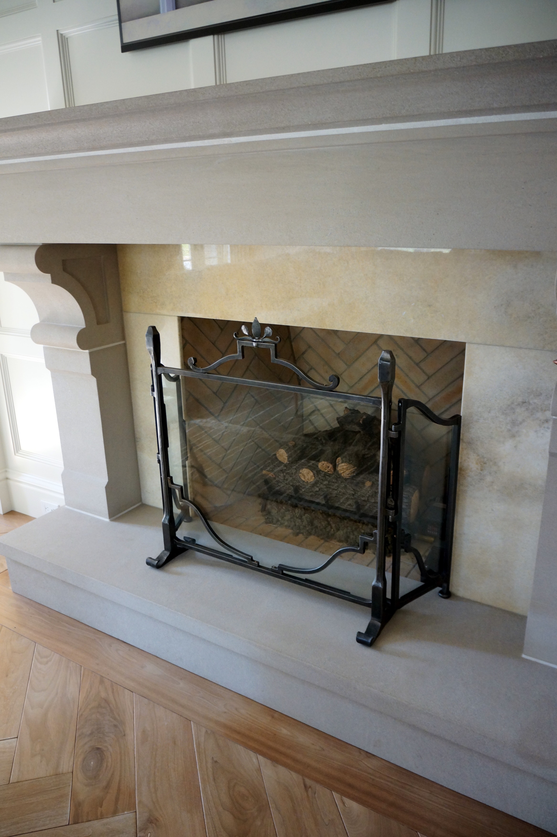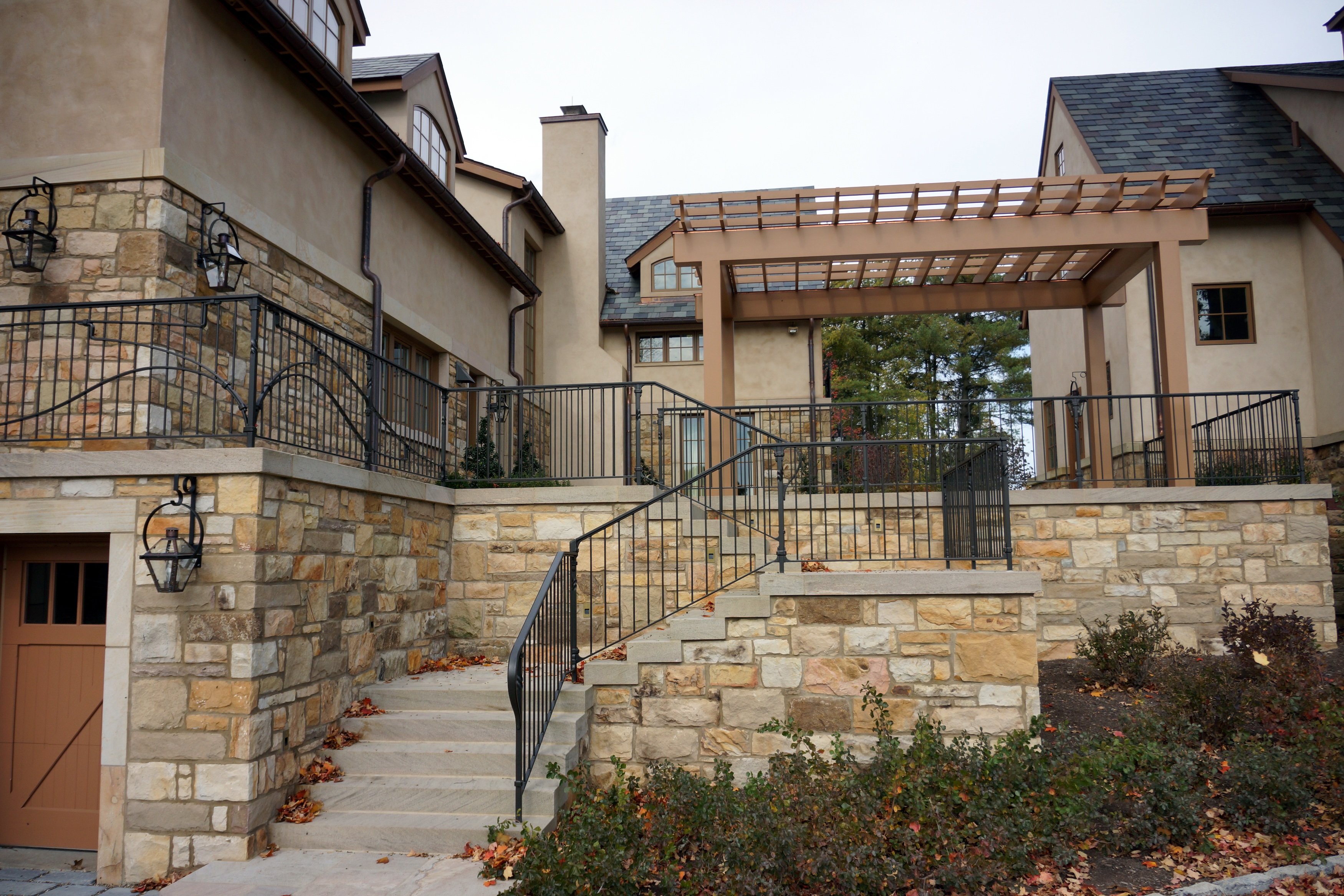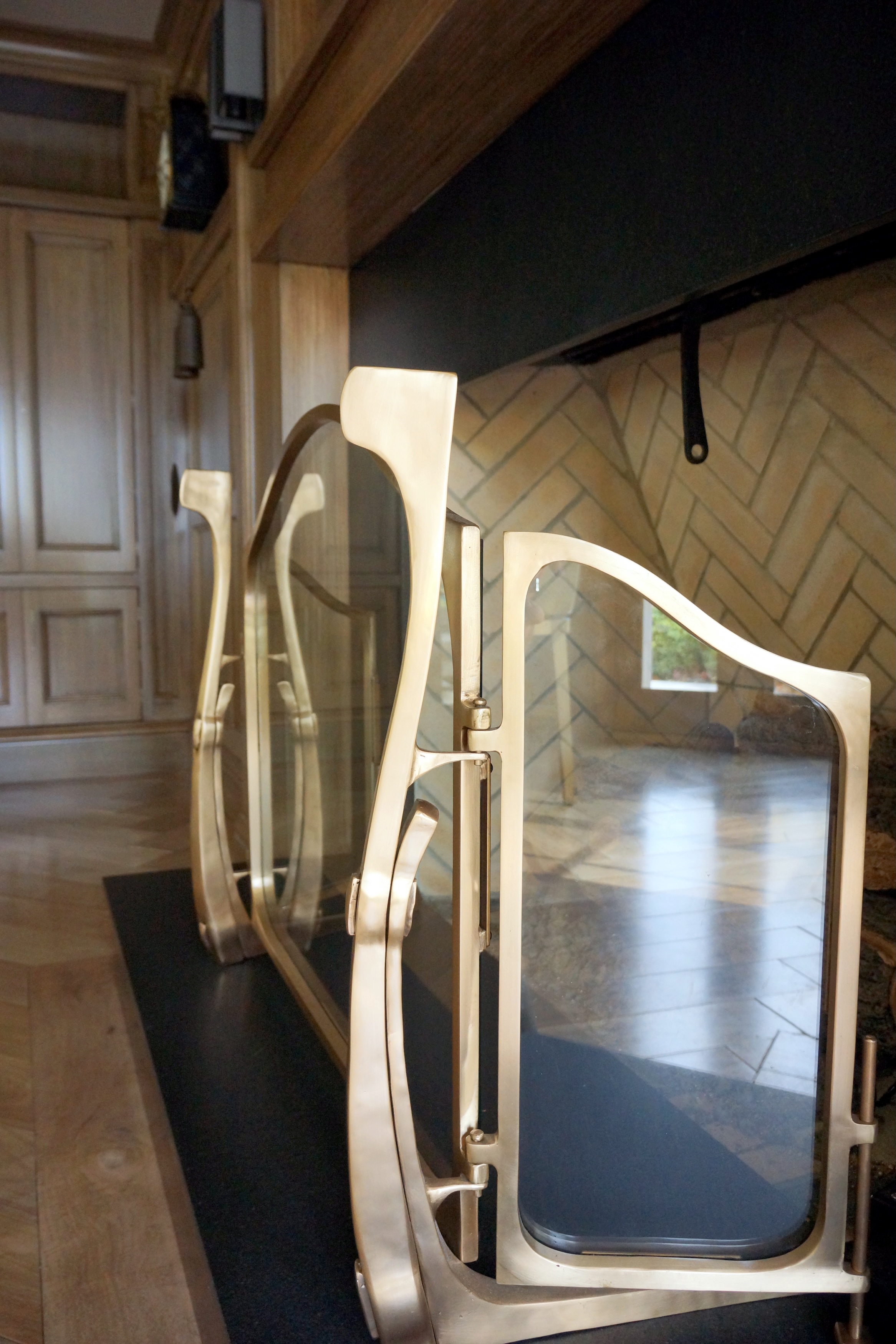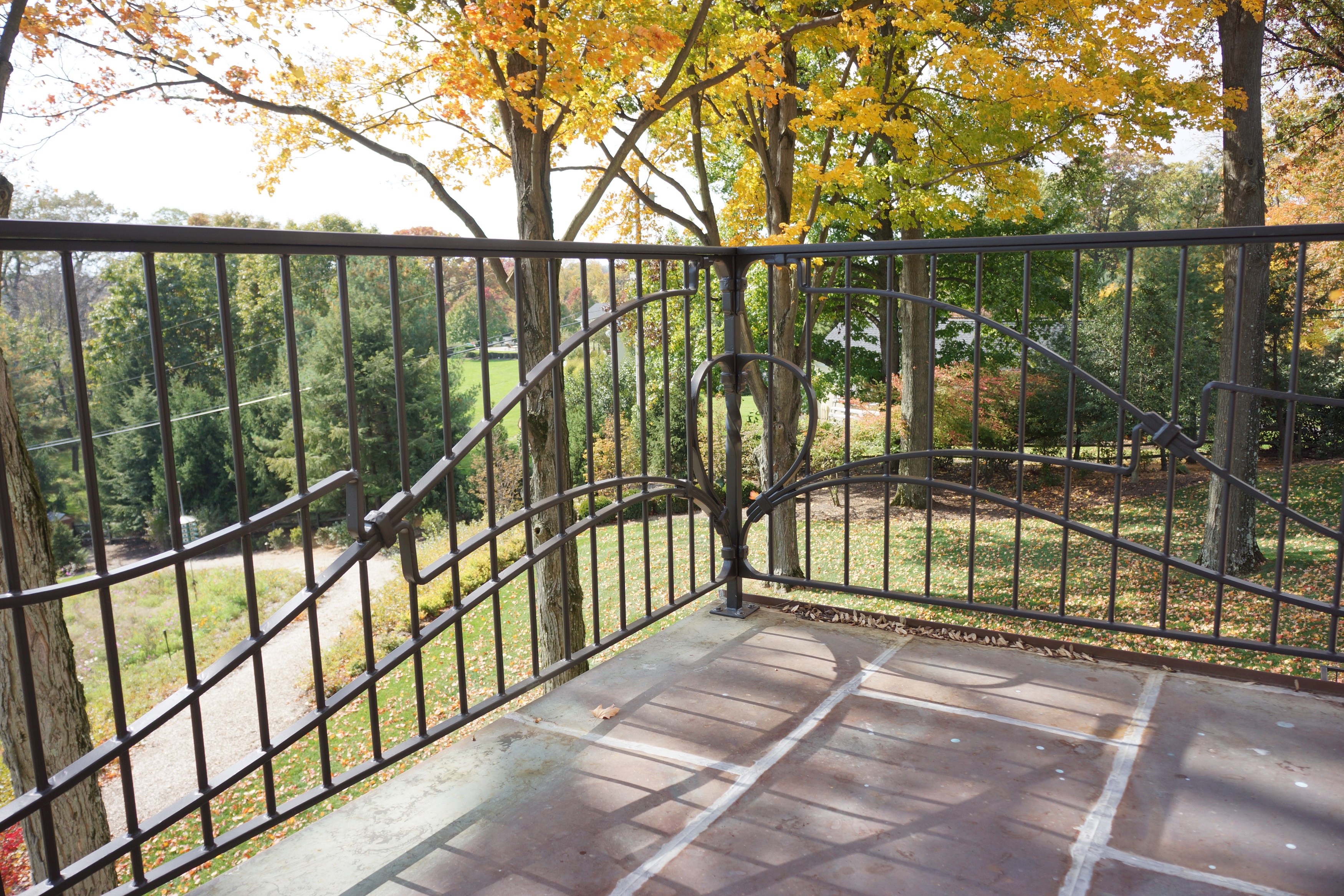 As part of their extensive renovations of their estate in the Sewickley Heights, the Mross family commissioned Colin Carrier, and his London Pattern studio, to design and create numerous custom pieces, including exterior railing, several balconies, three unique sculptural fire screens, and custom details for their bar space.